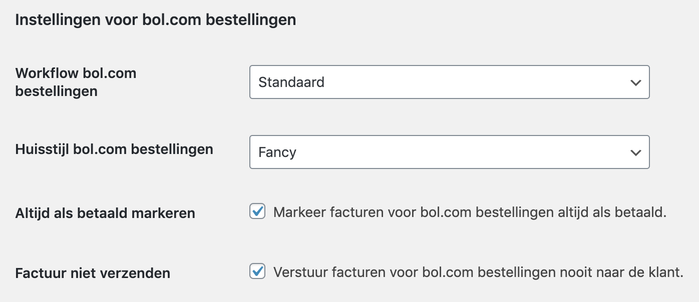 Steeds meer WooCommerce shop houders verkopen ook via Bol.com. Vaak wordt dan de Bol.com WooCommerce plugin van Woosa of de Channable WooCommerce integratie gebruikt om de Bol.com bestellingen te importeren in WooCommerce. Als je onze Moneybird koppeling voor WooCommerce gebruikt om automatisch Moneybird facturen te maken, kan het handig zijn om een speciale workflow en/of huisstijl te gebruiken voor Bol.com bestellingen.