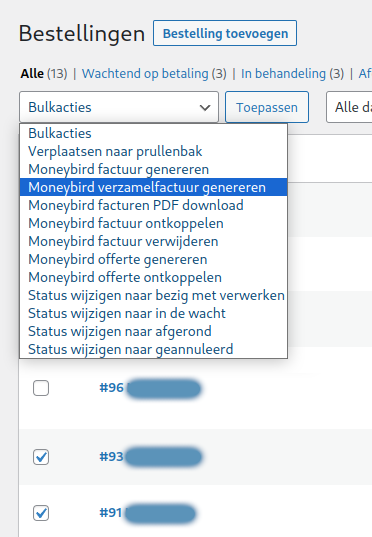 Meerdere WooCommerce bestellingen op Moneybird verzamelfactuur