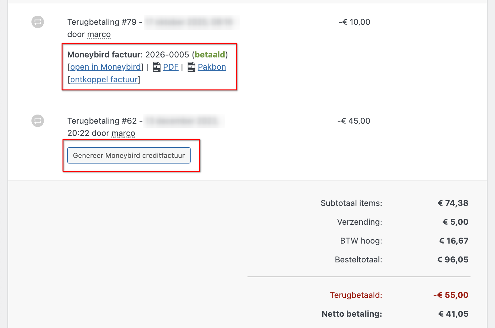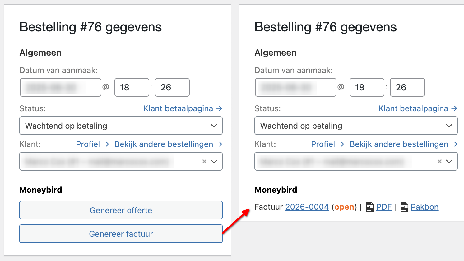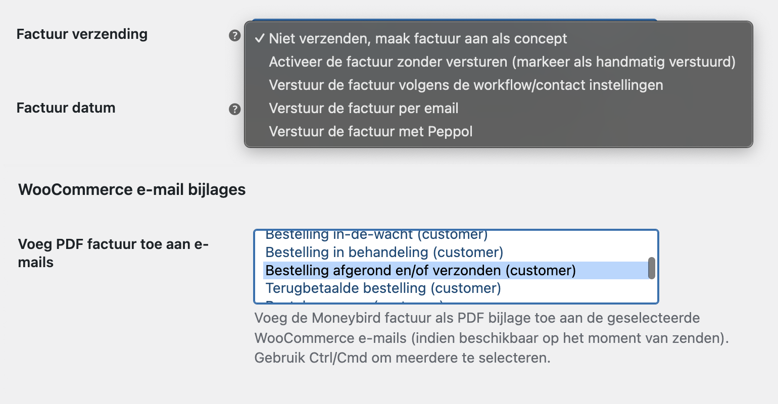 Verzenden via Moneybird of WooCommerce email